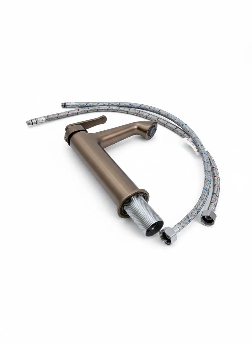 Rafinament clasic reinterpretat pentru baia modernă. Bateria B1006A 01 se remarcă prin designul elegant al mânerului și bazei în trepte, inspirat din arhitectura clasică. Finisajul bronz satinat aduce o notă caldă, sofisticată și atemporală, perfectă pentru băi cu accente elegante.