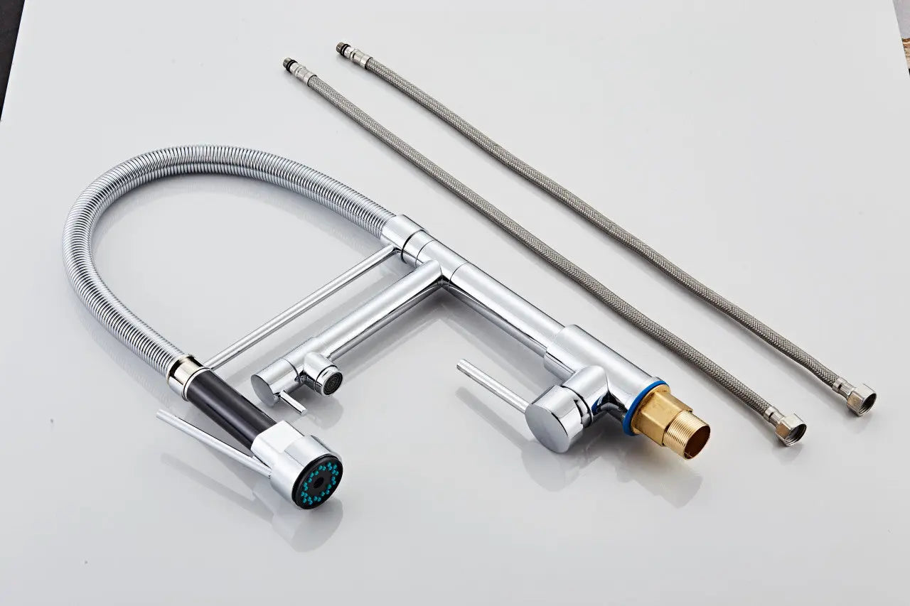 Baterie bucatarie profesionala cu jeturi de apa independente si pipa flexibila.